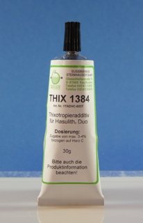 Thix 1384 wird vor der Mischung mit dem Härter in die Harzkomponente eingerührt. Eine 30g Tube reicht für die Verdickung von ca. 800-900g Harz.