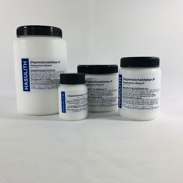 Unser Dispersionskleber-P abgefüllt in Weithalsflaschen zur Entnahme und Verarbeitung größerer Mengen oder für den Flächenauftrag. Lieferung möglich in 100ml, 300ml, 500ml und 1.000ml Weithalsflaschen.