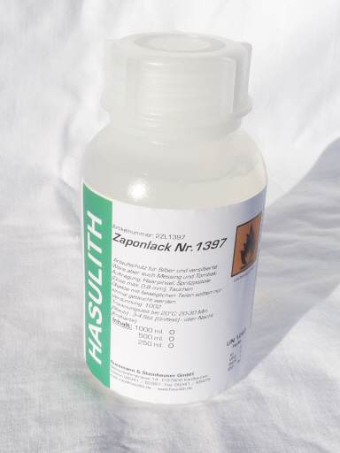 Schnelltrocknender, lösungsmittelhaltiger Klarlack als Anlaufschutz für Silber, versilberte Waren und Buntmetalle. Geringe Eigenfarbe, hohe Gilbungsresistenz. Gebrauchsfertig. Nur für den Innenbereich.
